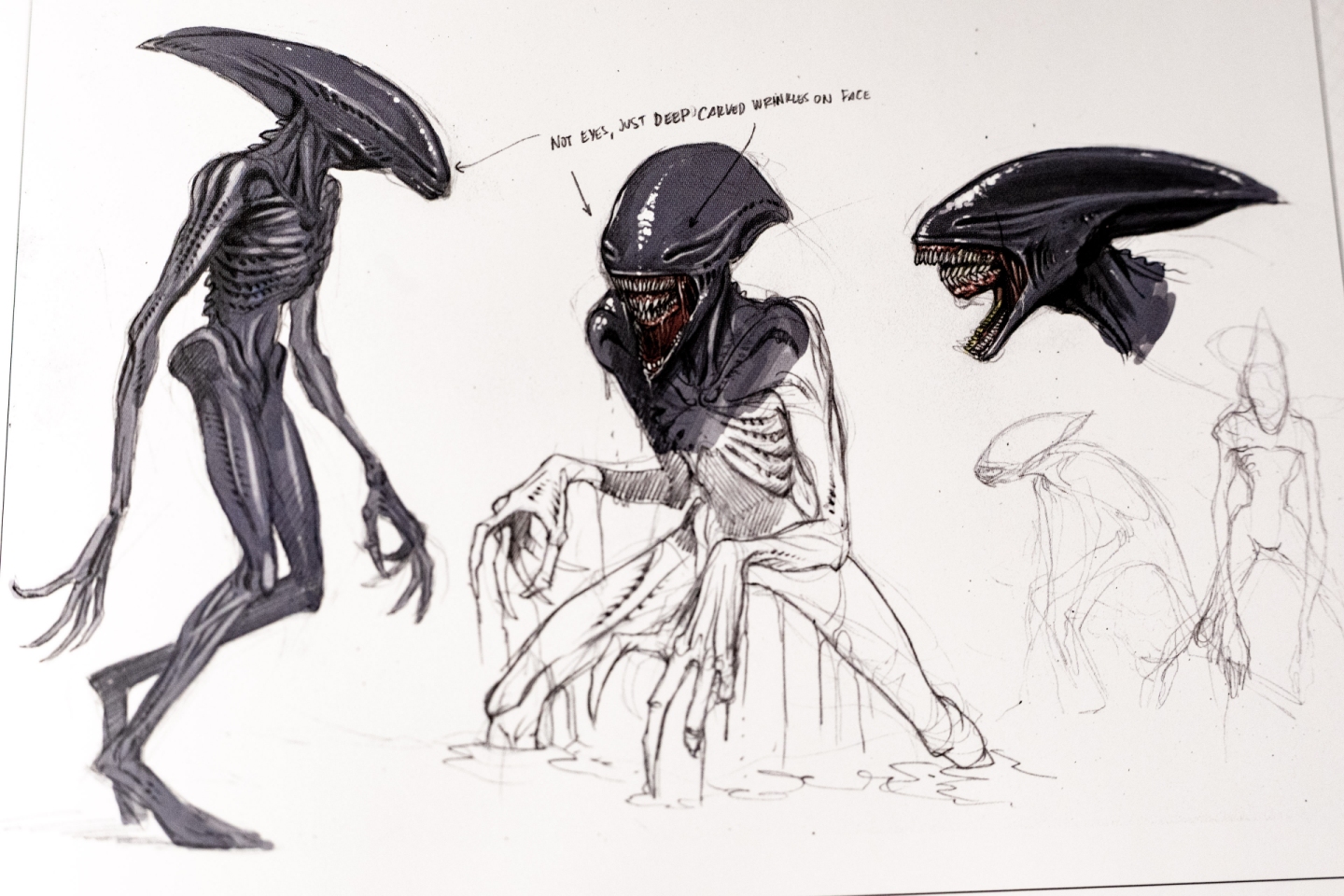 It was after i was told this... that Ridley a month or so latter released that they are trying to introduce a fresher form of the Monster.. in the 3rd Act, one that would go back to resemble the Original Monster..... which means he felt the Alien after Alien i.e Aliens, Alien 3 Alien R and AVP movies Xenomorph was different to the Original idea....