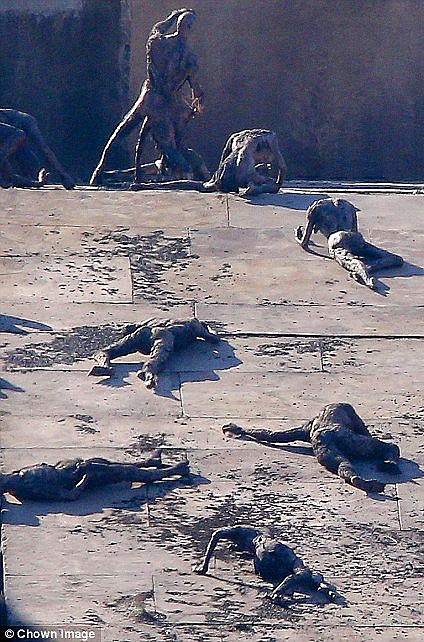 When i talk about Bio-Logical Warefare.... this Scene looks as it its as if they been attacked by some Powder/Mud type weapon... maybe its like the Red Powder in the 80s Show V the the Human's created and then used to kill the Reptiles?