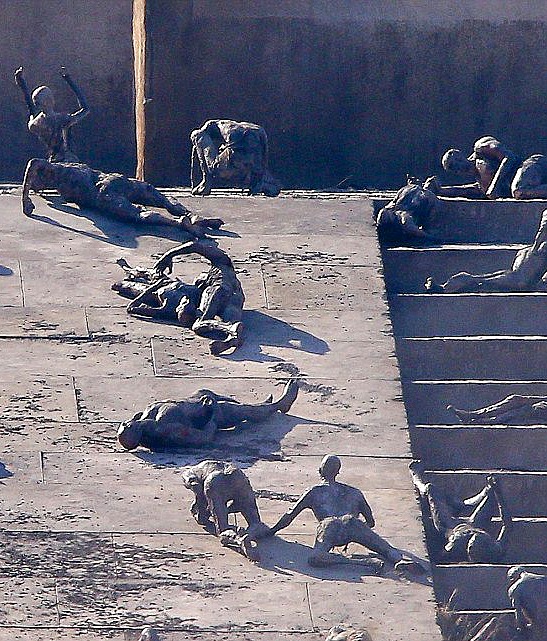 We see some kind of Apocalyptic Event perhaps? a few have compared it to Pompeii, however this is certainly no Natural Disaster. Although it looks a bit like a scene of some disastrous event, but what kind of Event?