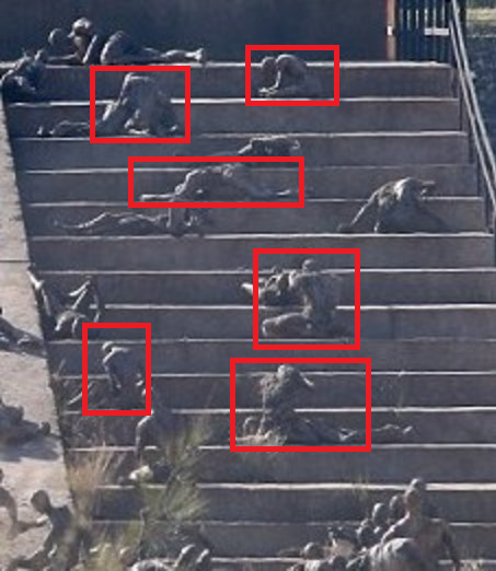 Here we see these beings spawned across the steps.... i want you to take note of some of them.... One that looks Female who is on her knees and looking up at the Heavens with her arms raised... and a Male looking one to her left who is standing with his hands in front of his face.