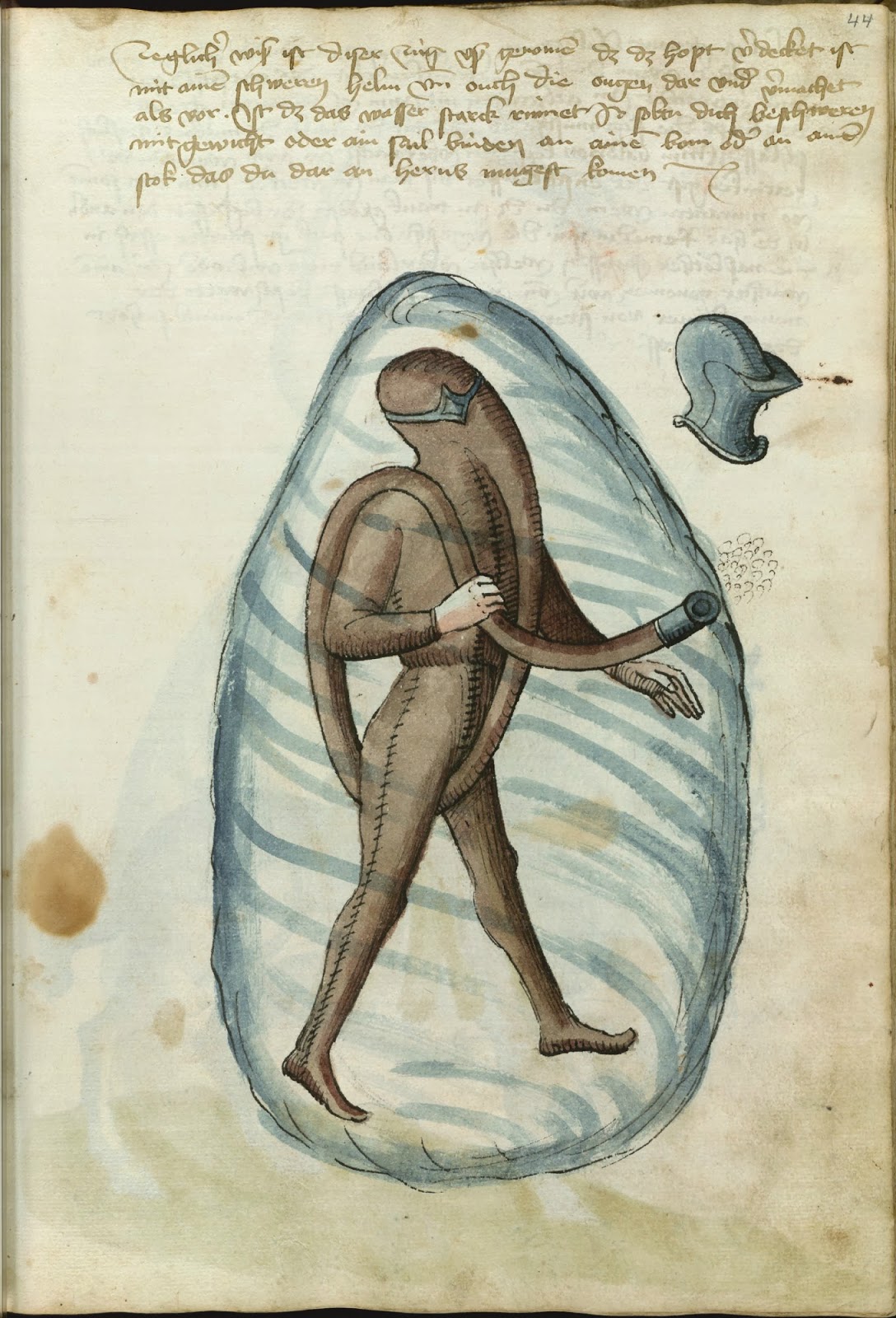 Diving suit drawn by Hans Talhoffer back in the 15th century for the Thott manuscript
