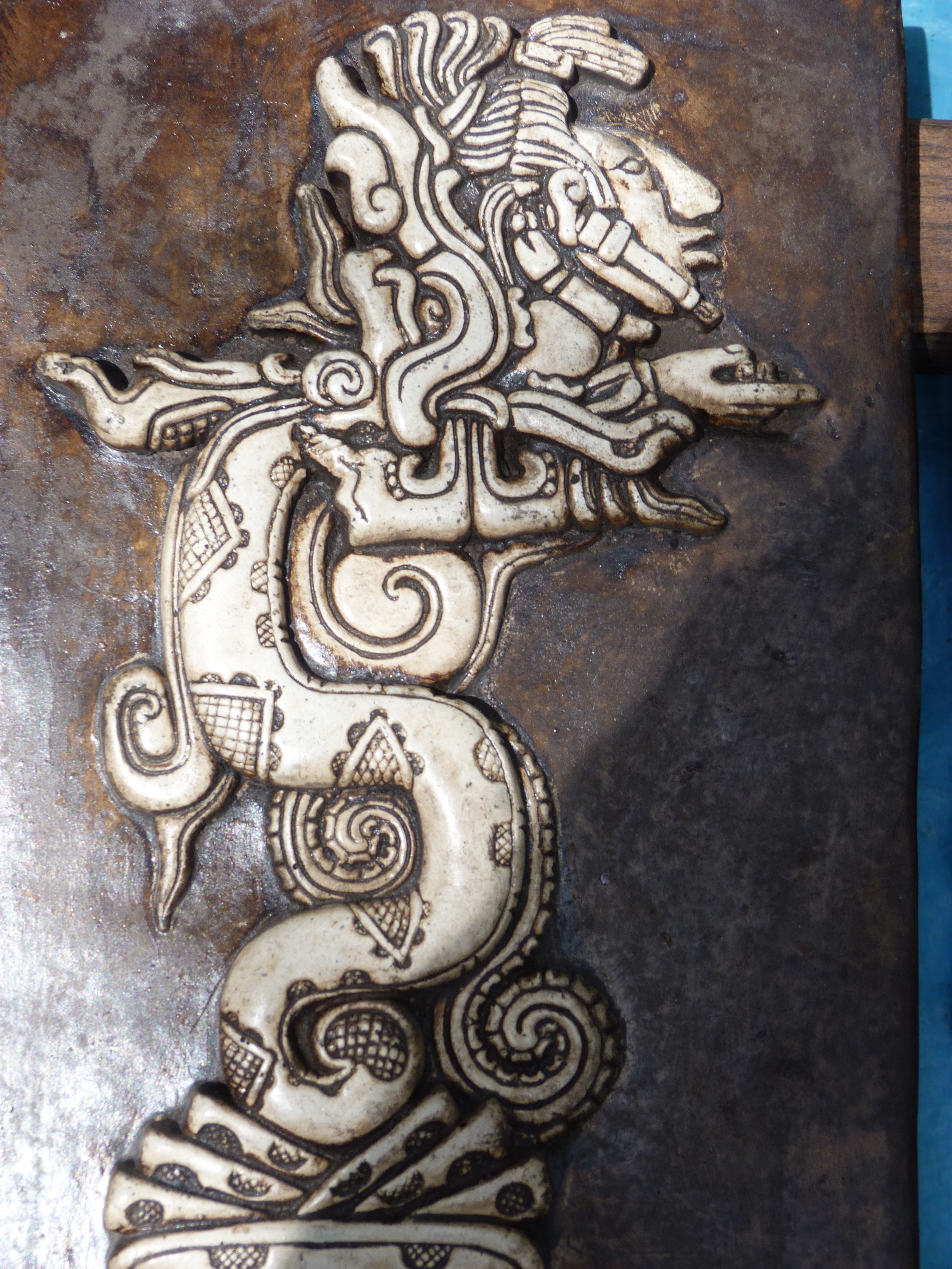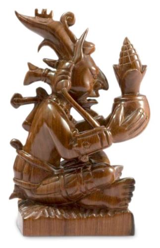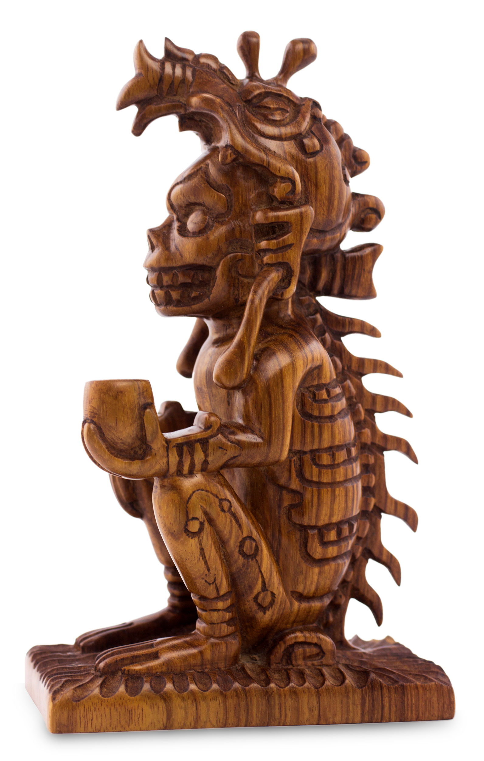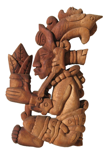 some Carvings taken from Mayan Gods, that have been recreated via Wood and Stone Carvings.