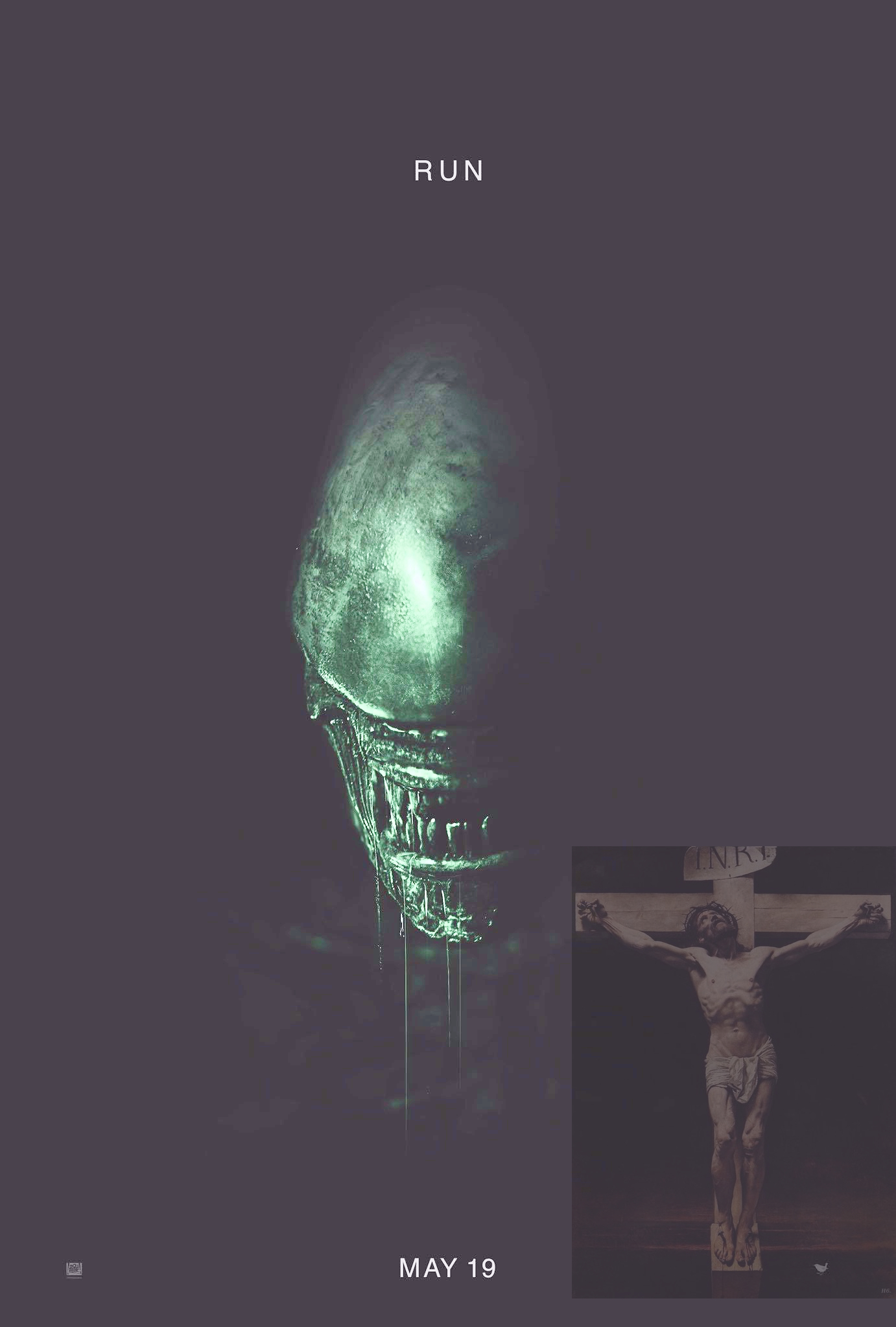 @Gavin, it's a faint similarity for sure. The shape below the Xeno face does seem to resemble a cross, in a way. The Deacon mural too, features this pose. Makes you wonder...