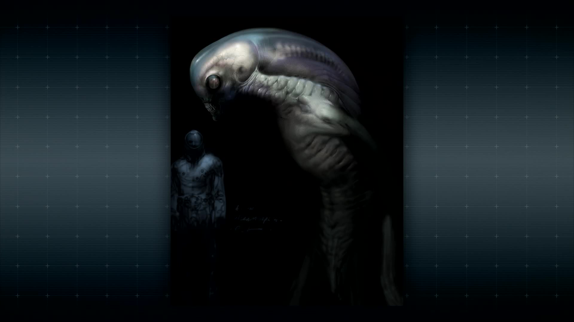 2) A smaller chest buster size Alien that looked like some unused Prometheus concepts and a bit like the one model done for a alternative Deacon Chest Buster, it lacked arms and legs and looked like a work in progress peice... also a image on the wall that maybe depicts the design but we only see the back in the Prop...