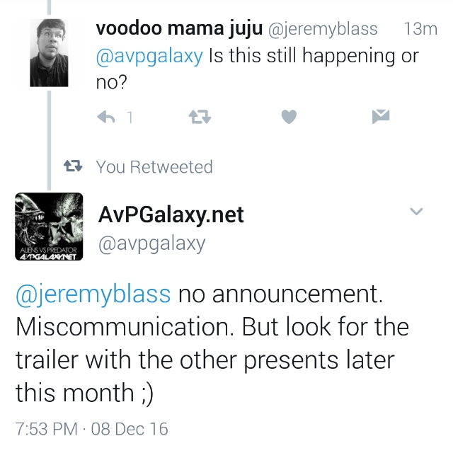 UPDATE: AvPGalaxy have now redacted their initial claim, saying an announcement is no longer happening and have explained the initial statement was a miscommunication.