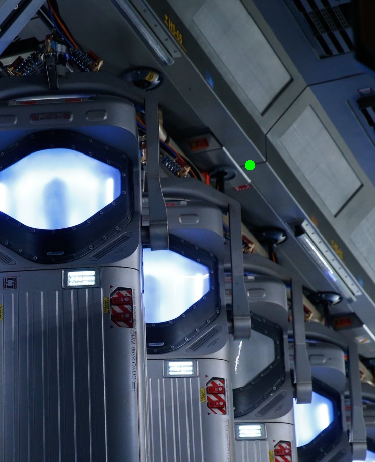 Interesting image, we see 6 (maybe 7) Cryo-Pods but there could be more, the first Cryo-Pod is labled CRYO-2380 WRC but i think the next two look the same so this is just a Model Number