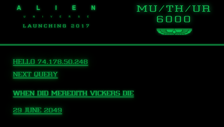 So who knows.... if thus MU/TH/UR Program can be trusted, sometimes it seems it spouts stuff that dont match... like say when you Type Shaw and get Jonesy lol