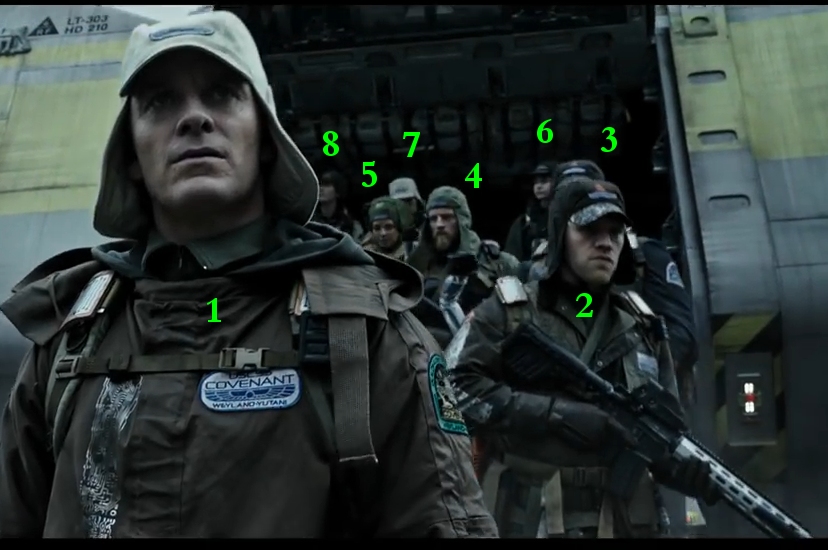 So my theory back when the Trailer came out was that 7 and 8 are Rigby and Crudrup, and we dont see here Seimetz or Bichir but they are on the ship.