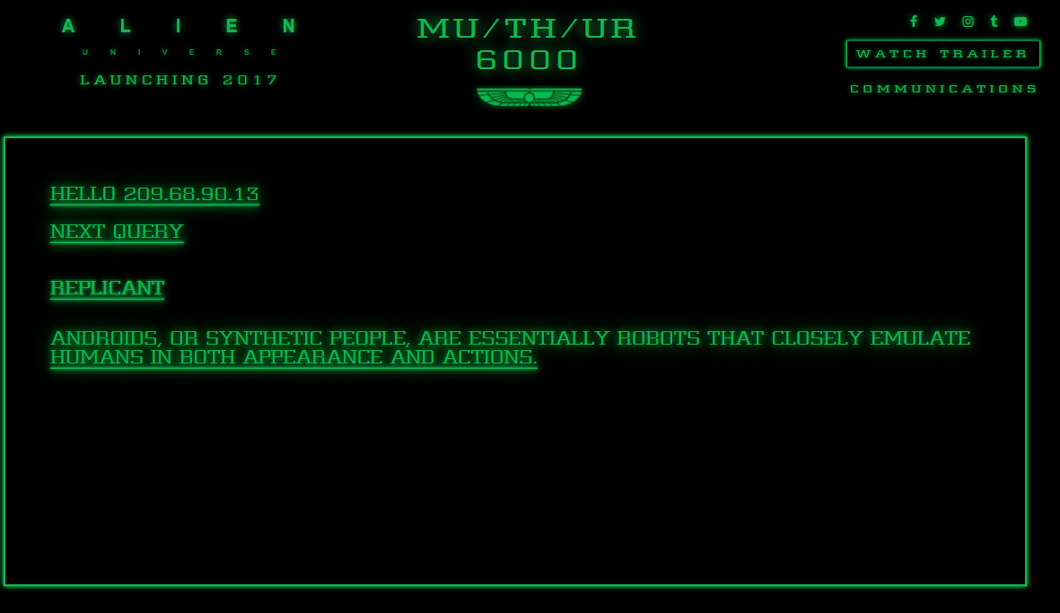 guys put in 'replicant' into the MUTHER computer Here it's different from before. Then put in 'tyrell corporation' this is proof that they are in the same universe.