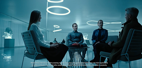 I felt that way too S.M, especially with the music played in the room with large open white surfaces and with the shot with the customers. The well to do in the future always seem to have really great collars on their blouses and shirts.