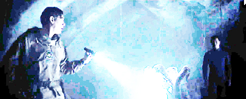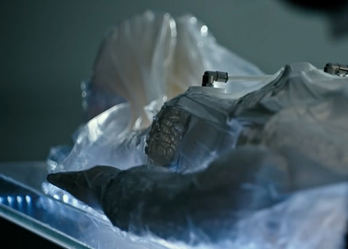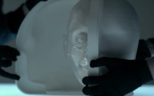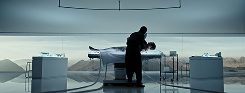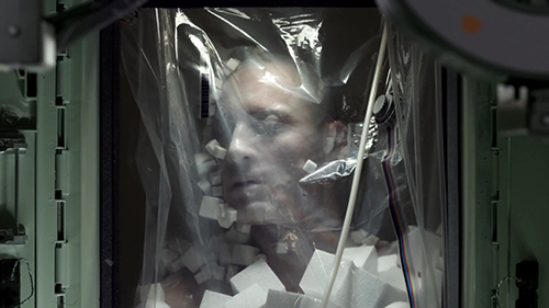 Here are other shots of Walter's construction. David is presented in a box and awoken while Walter is handed a drink and clothes and begins to answer questions.