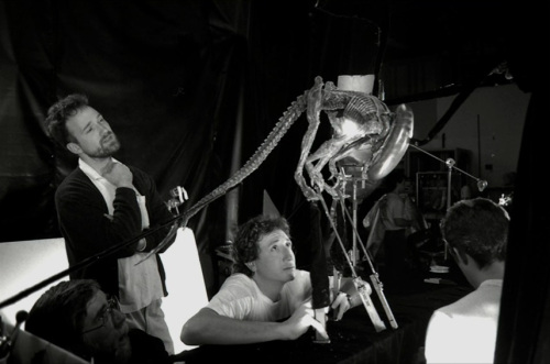 The Queen Alien was suspended from a crane with two suit actors portraying the Queens for arms, and extra technicians off camera operating the feet via rods and the mouth via animatronics. A similar, though simpler technique could have been used to realize the Runner alien in the mid to close up shots for Alien 3, but because of the film's many production woes and Woodruff's insistence to don the suit, it is no surprise that this never happened.