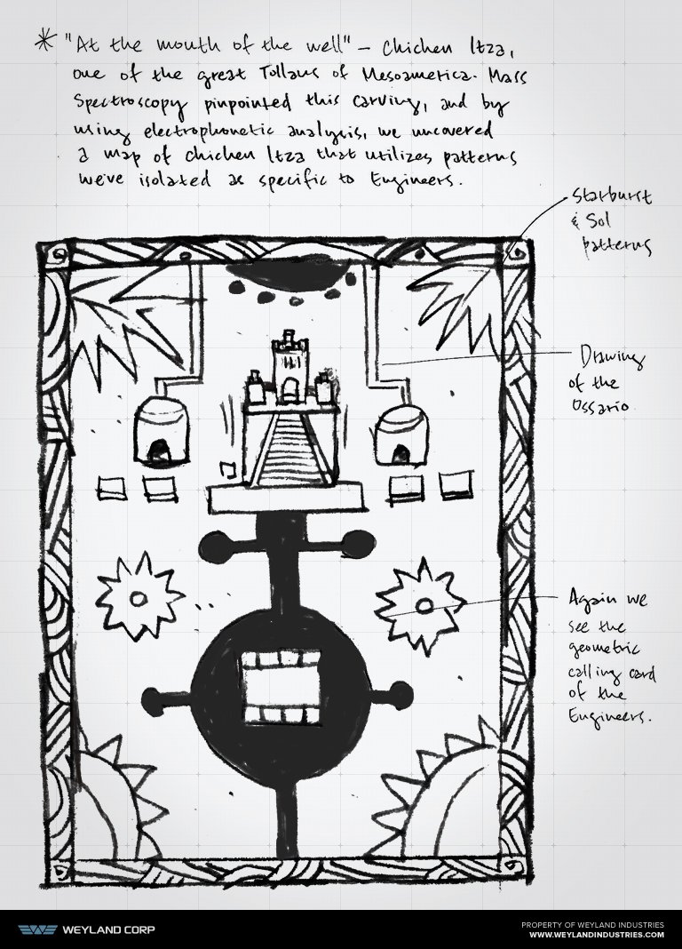"We did something very, very bad, and somehow the consequences of that dreadful act accompanied the Engineers back to LV-223 and massacred them. If you have uneasy suspicions about what 'a bad thing approximately 2,000 years ago' might be, then let me reassure you that you are right.”
