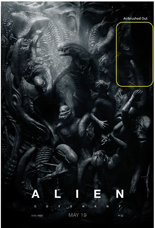 I was just at Fox Movies AC Site looking for some new info and noticed the AC Header was different then the AC Poster. Namely what appears to be an unhugged humanoid running from the poster on the right side. Why air brush it out on the poster but have it on the header?
