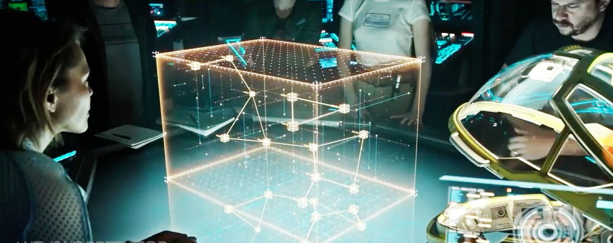 I think that is not a pod in the hologram, but a machine or a holo-projector (?), or something similar - it looks like a big sphere, two halves of a sphere, like a mouth...