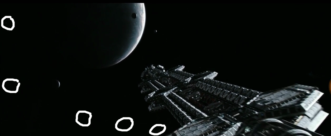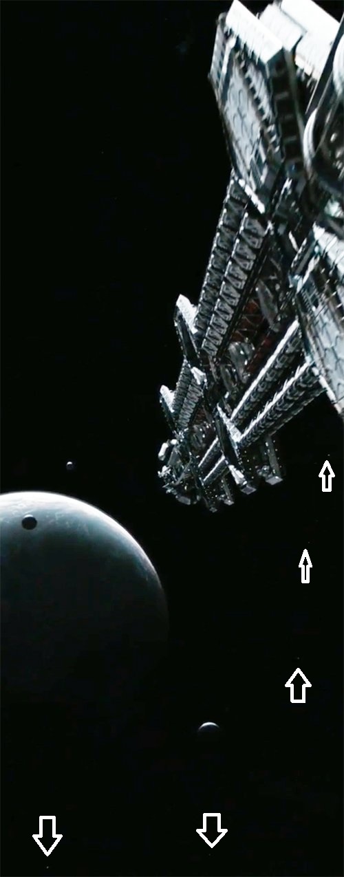 Here is a shot of the Covenant ship with three moons visible around a planet.
