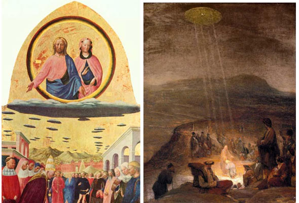 I love the religious undertones about it in general. Religious stories all have a bit of science fiction in them already. Massive floods, an arc full of animals of each kind, tree of life, burning bush, soul, giants, the garden of eden, adam and eve, signs, symbols, warnings, knowledge, the stars, the planets, the universe, wars of belief, halos, vimanas, flying beings with rocket packs and wheels, angelic beings, heaven, hell and earth, battles in the sky, mystical tablets, ark of the covenant, monoliths, sacred statues, lost or destroyed civilizations, plagues, fallen angels, sacrifice, nonbelievers, believers, resurrection, virgin births, creation, curing the sick, the blind, water into wine, the holy trinity, walking on water, eating of the flesh, drinking of the blood, and mortality.....the list goes on and on....so yeah, I think it's pretty neat how this genre is using those mysterious subjects to tell a story...I mean, theres ufos all over religious paintings anyway...