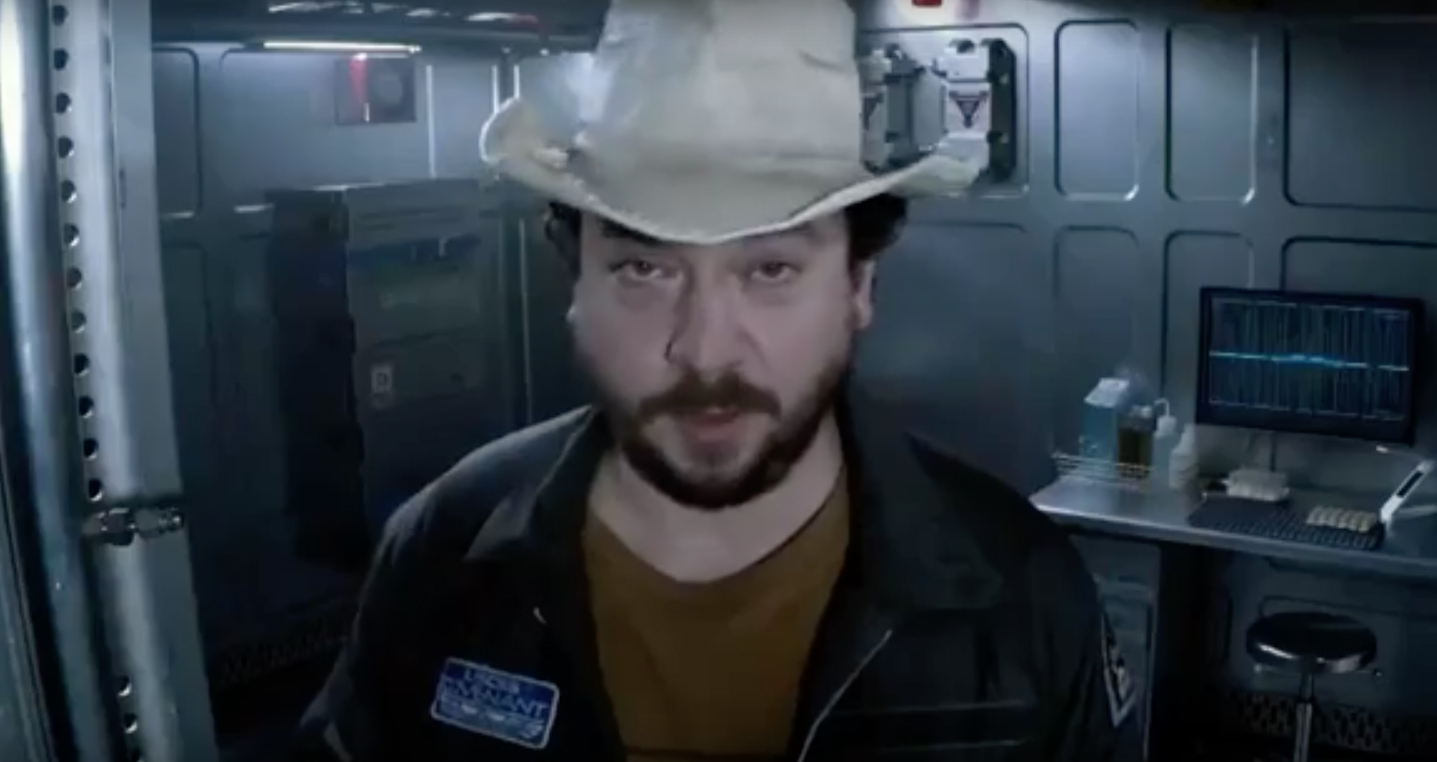 Thank you Ingeniero. Nice captures! Definitely MUTHUR 6000, different style to Hall 9000, but she is, the interior guidelines of MUTHUR are the same as everybody knows, Crew Expendable mission as NOSTROMO, my question is about Franco s death, maybe knew something?, or will see him again at the end of the movie as Peter Weyland in PROMETHEUS. No Spoiler!