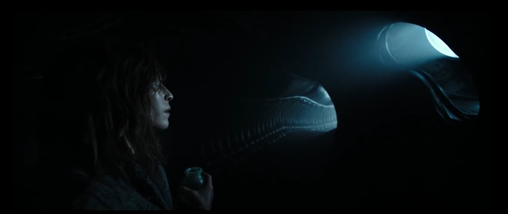 We hear David's monologue where he begins to tell of how he and Shaw escaped LV-223 on one of the engineer's ships. We then see Shaw reattach David's head to his body.
