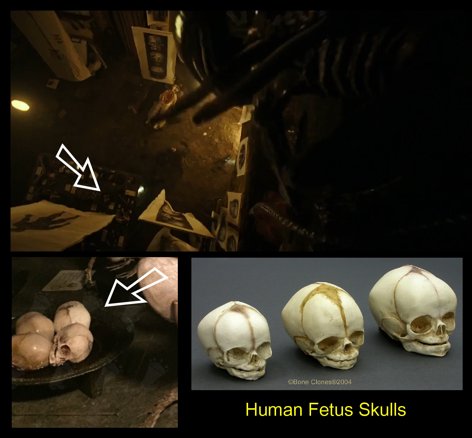 Davids Workshop has these Skulls that i pointed out with arrows and these are Human Baby (New Born) Skulls, we have to ask where did these come from?