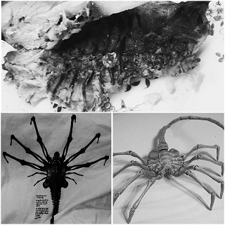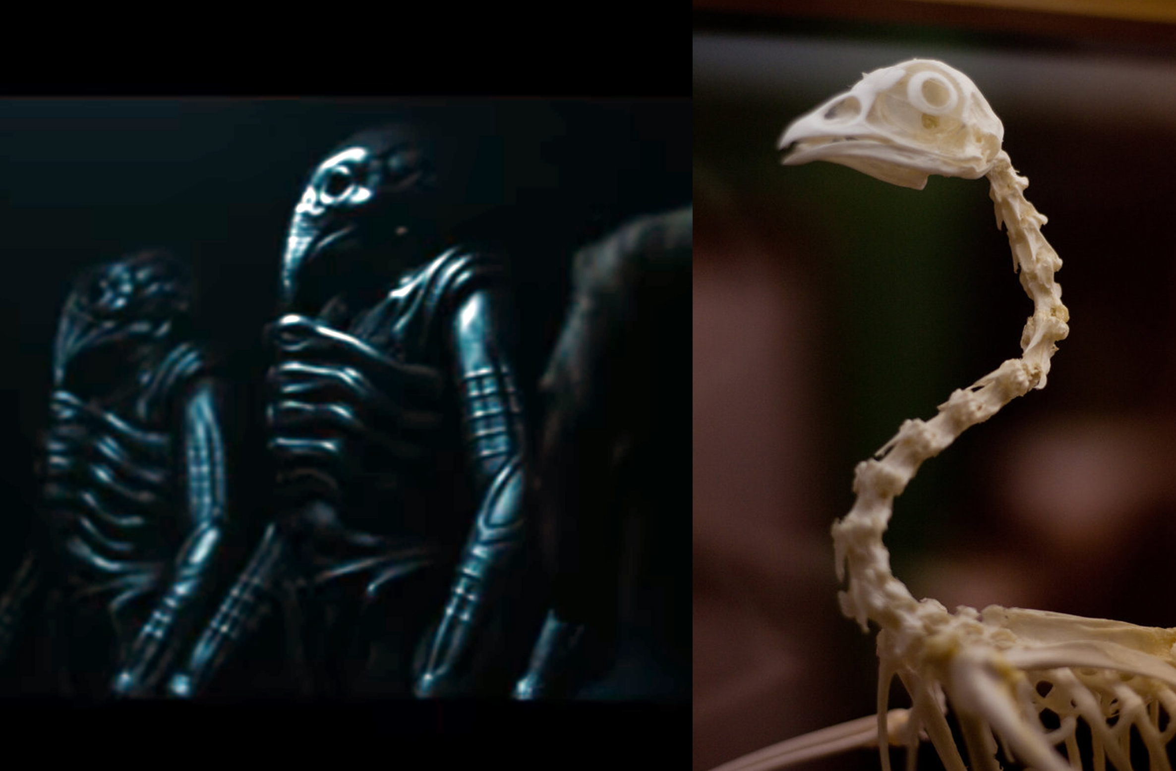 I want to share my personal "Grilled-Chicken-Theory". Well, maybe there is a connection between the anatomy of a dissected grilled chicken and H. R. Giger's/Sir Scott's Xenomorph(s) and Giger's/Scott's Facehugger(s) [skeleton]. Maybe Mr. Giger's and also Sir Scott's favorite food is grilled chicken. That's the theory.