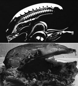 - Now you put the grilled chicken in relation with the Xenomorph and Facehugger: