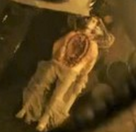 This may be because the picture is blurry, but I think the cross section through the body(rib cage area), looks like the cross section of a Xeno egg.