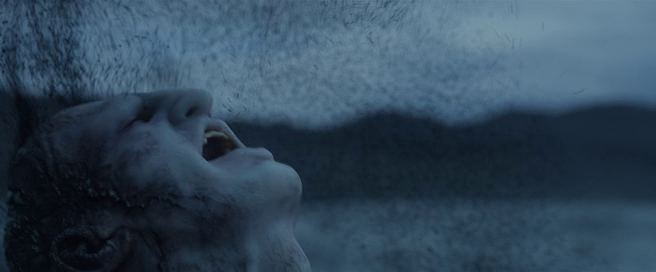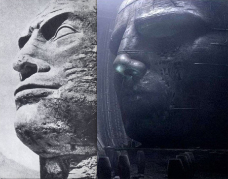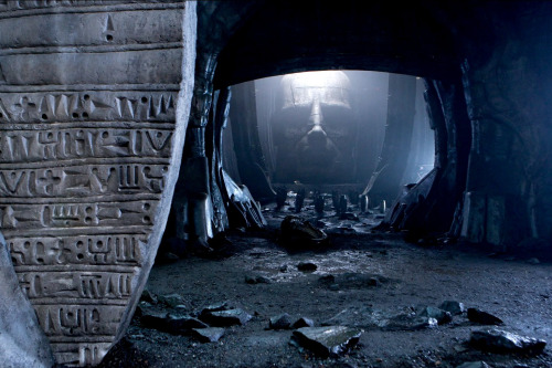 The head is inscribed with glyphs on its front and sides. One idea thrown around production was to have the Engineers bearing facial tribal tattoos. The glyphs on the giant head resemble the alien language inscribed on the structure’s walls, doorways and on the deadly ampules.