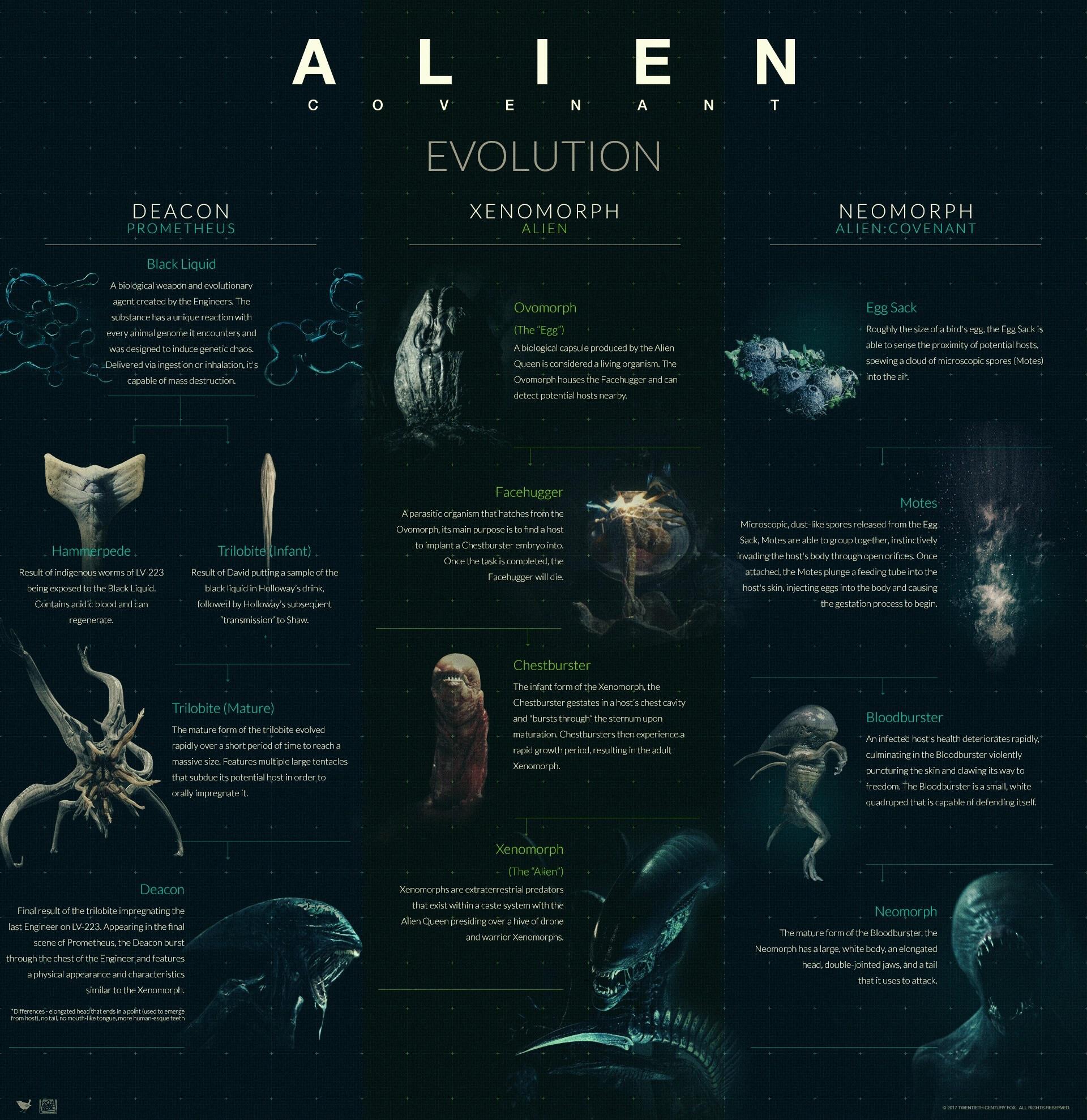 MemberPraetorianJune 09, 201731961 Views14 RepliesThe first image shows the evolution of the Xenomorph, the second one is about the Deacon, and the third one describes the evolution of the Neomorph.