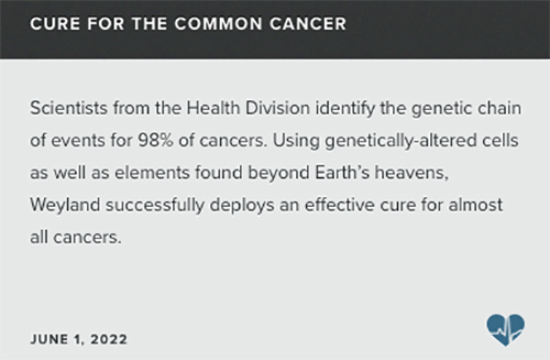 Peter Weyland had conquered disease, reversed global warming and created clean air, opened communication across languages (babel), and created an army of cybernetic individuals indistinguishable from humans.