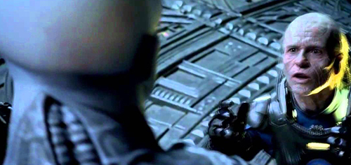 You know how I got this rich? I ask myself: what does God spend his time doing? And I go and do that. Dr. Elizabeth Shaw laughs incredulously. Stifles it. Weyland’s not joking.