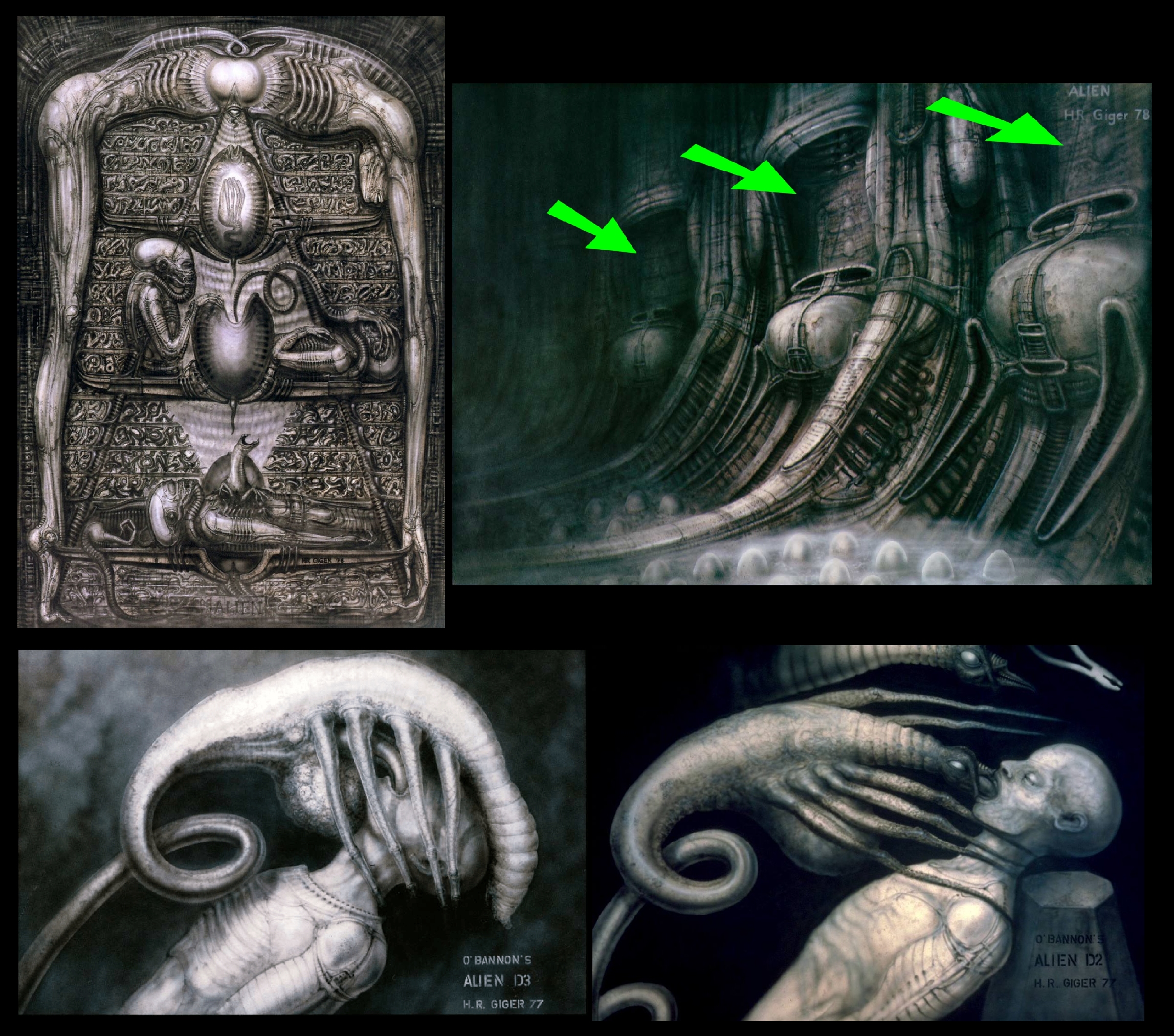 "What gave us the cocoon concept was that insects will utilize other's bodies to be hosts of their eggs. That's how the alien would use Dallas and each of the crew members it kills. This explains why the alien kills them one by one. It wants to use each person as a separate host each time it has new eggs…The biological make up of humans was useful, however, for the alien eggs to feed on…"Omni: Screen Flights, Screen Fantasies.