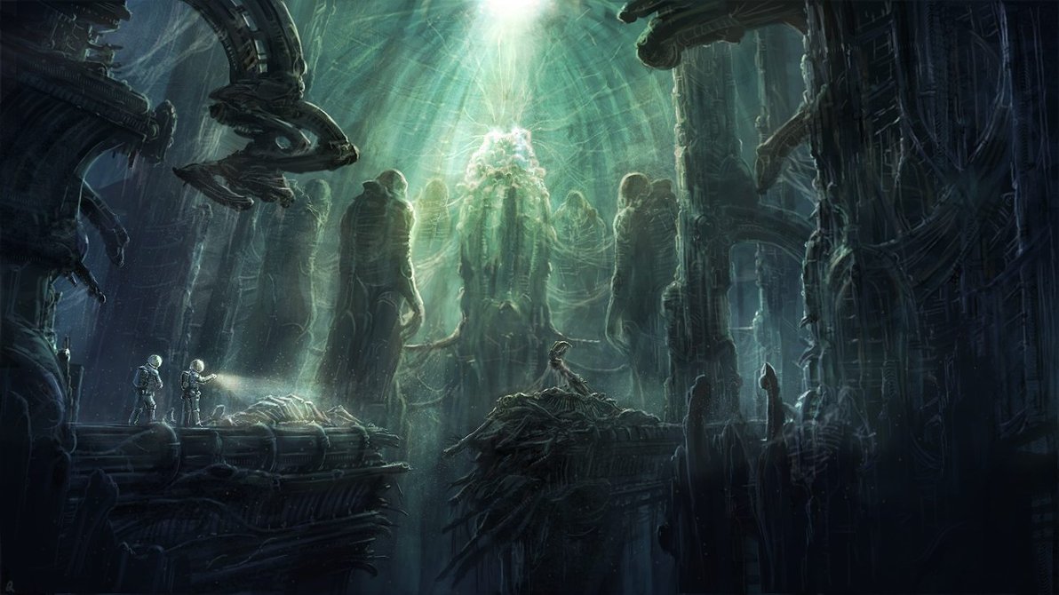 Prometheus Chamber -- 'Third picture inspired by the movie Prometheus, which is still mystery regarding the plot and story. My idea was a scene when the explorers from earth discovered central chamber of the Space Jockey alien race, they are wondering what is the purpose of it and what happened.'