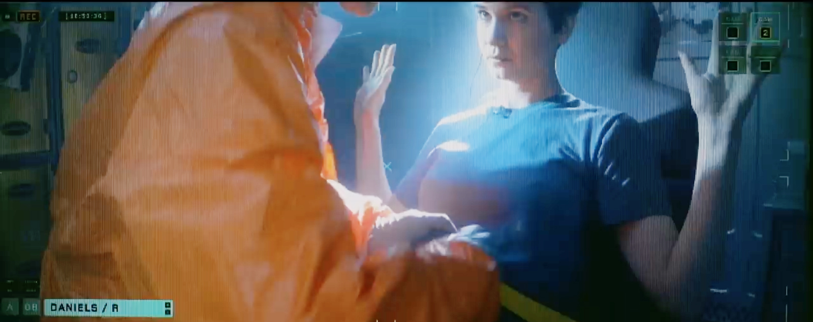 The Covenant crew is undergoing tests on the moon Phobos. The images that are shown for just an instant appear as part of the psychological tests given to the crew.