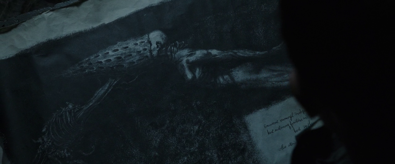 Below is the other site that David 8 is harvesting eggs from that may be Dr. Shaw's corpse treated with his solution of black goo.