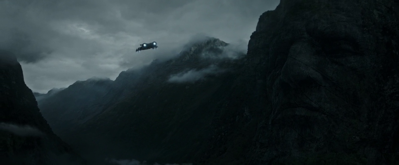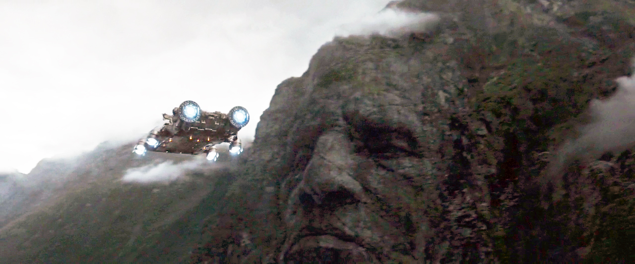 The remains of the Covenant crew who went to the surface of Paradise are leaving the planet in a shuttle flown by Tennessee. I'm sure most reading this noticed the Engineer face cut into the mountain at the end of the sequence in which Daniels fights the xenomorph (see below).