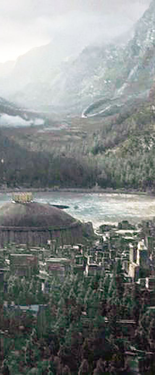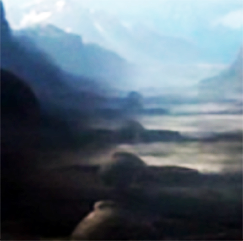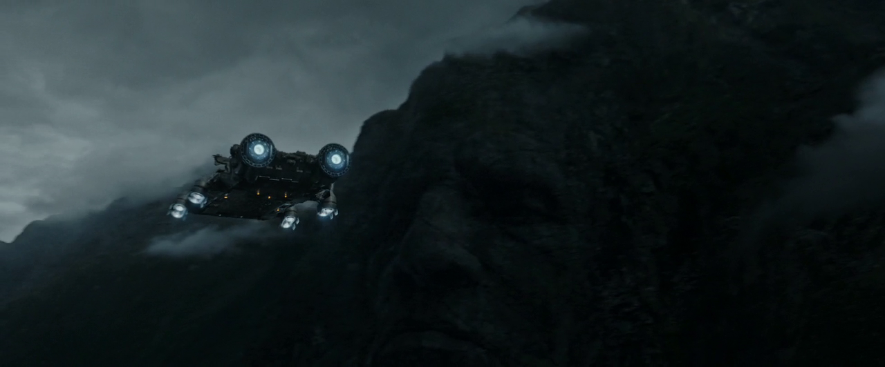'The camera angle seems stationary with the ship flying toward it with an Engineer in the mountain and when the ship flies by up towards the clouds the angle turns to see another Engineer face' - by Ingeniero