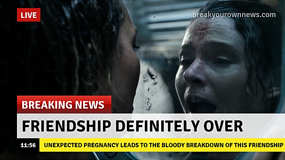 "Freindship definitely over". I can't let you out to contaminate the ship even though I got sprayed in the face with his blood and am out here.