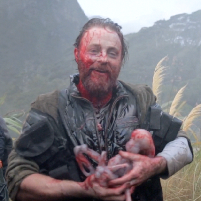 'Congratulations! It’s a Neomorph. Nathaniel Dean cradles the mouth burster on the set of Alien: Covenant.'