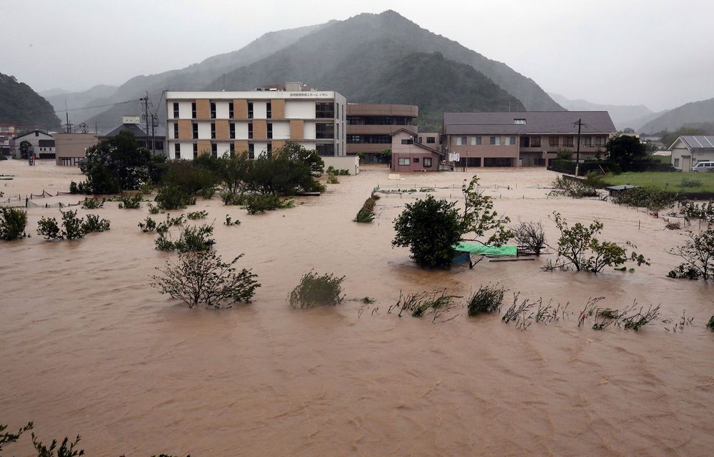 Bullet trains operators reported stoppages because of electricity outages and heavy rain. About 110 millimeters (4.3 inches) of rain in one hour was recorded in Oita prefecture, with some areas receiving more in one day than is typical for an entire month, according to NHK.