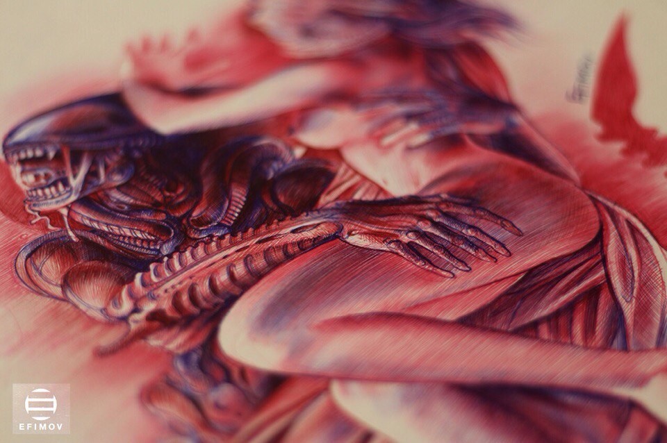 Ivan Efimov reveals one of his paintings from the section 'probably too much'. Kiss or blood-sucking, you decide.