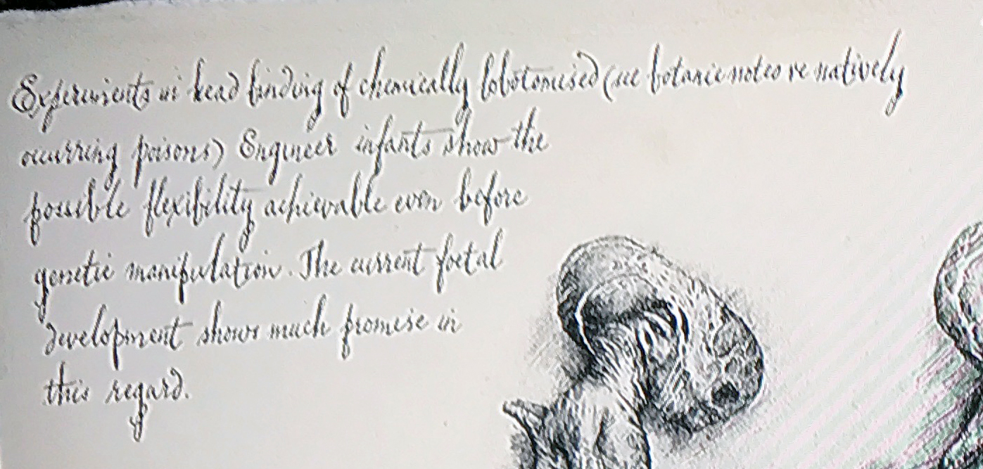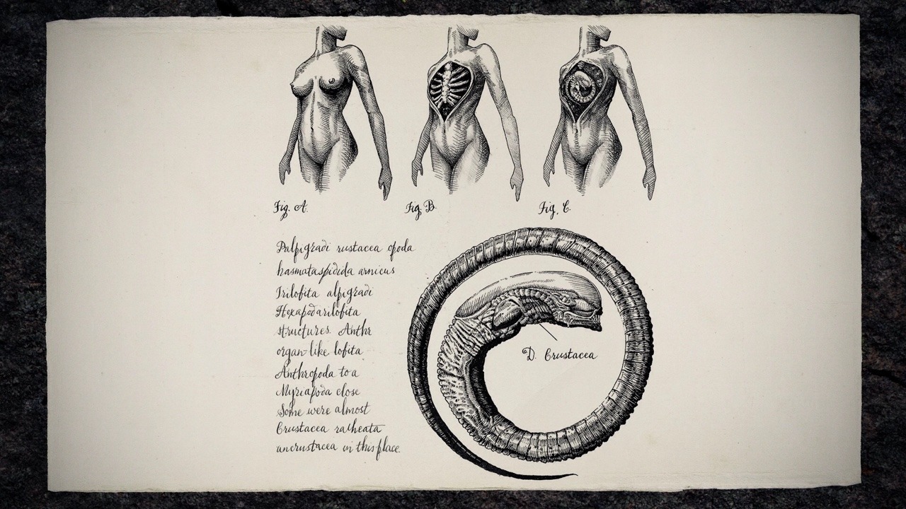 One of the drawings by David shows an original 1979 chestburster. The same drawing reveals a female body as well, but it is a human one. We can see the phrase 'Female Human' in the drawing.