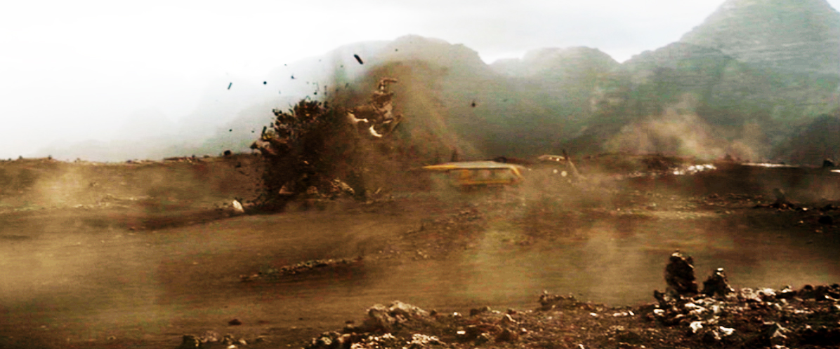 The Lifeboat hits a rock spire while landing (below).