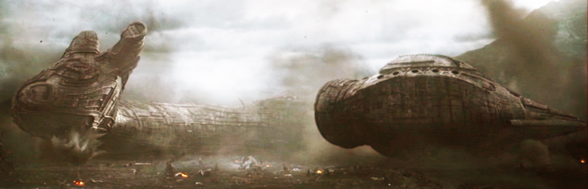 They quickly notice the falling juggernaut and try to save themselves by running away from where the Engineer craft appears to be falling toward.