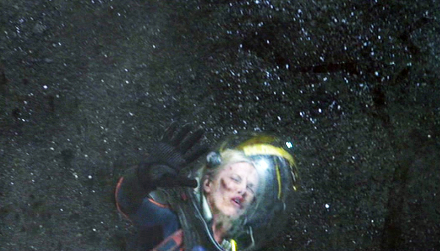 Dr. Shaw and Meredith Vickers watched as the Prometheus erupted in a magnificent explosion when colliding with the rising juggernaut on LV-223. The explosion reflection is visible on Vickers helmet (below).