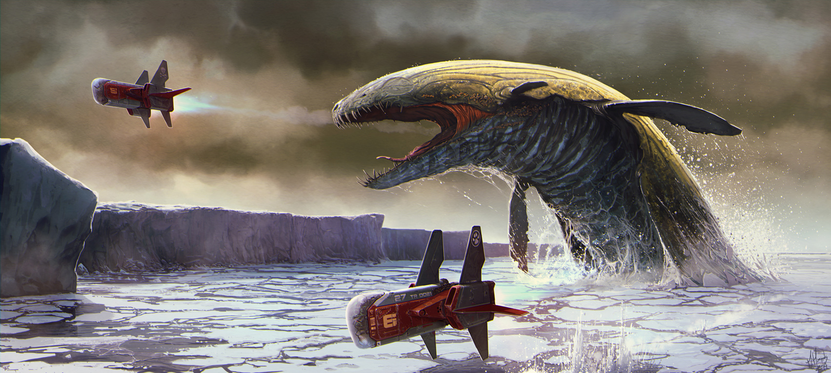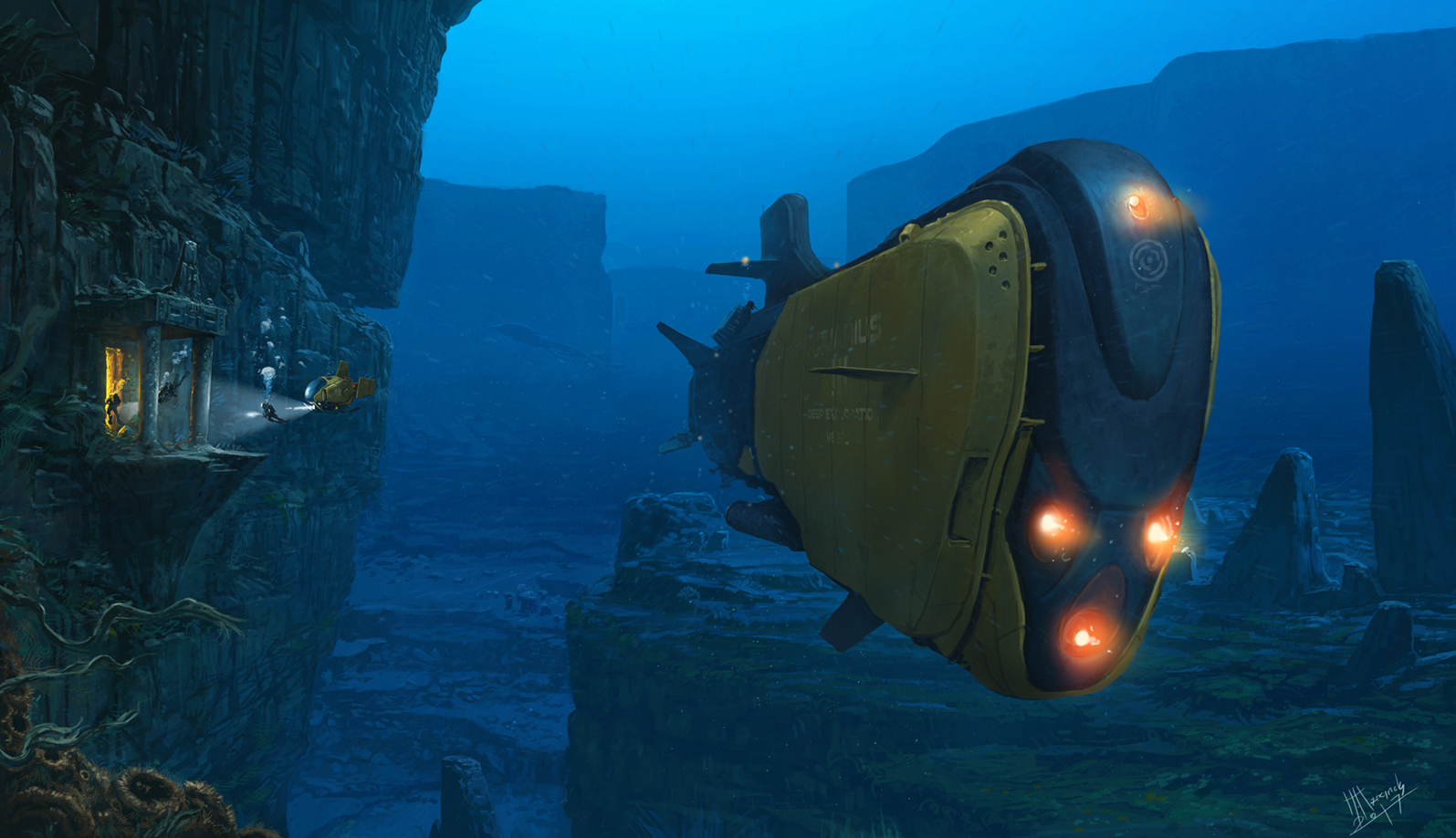 When I found 'The glorious science fiction themed artworks of Jaroslaw Marcinek, a freelance concept artist and digital illustrator based in Szczecin, Poland.', I thought that the underwater idea could work.