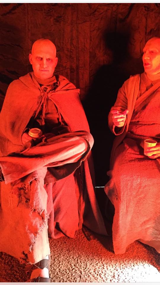 Engineer actors inside the tent, drinking coffee. Photo shared on FB group by Billy Mansell.