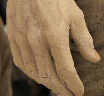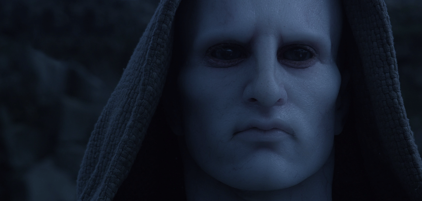 The same thing with the eyes. In the film, they look very black, but they actually have lighter sclera, not 100% black.