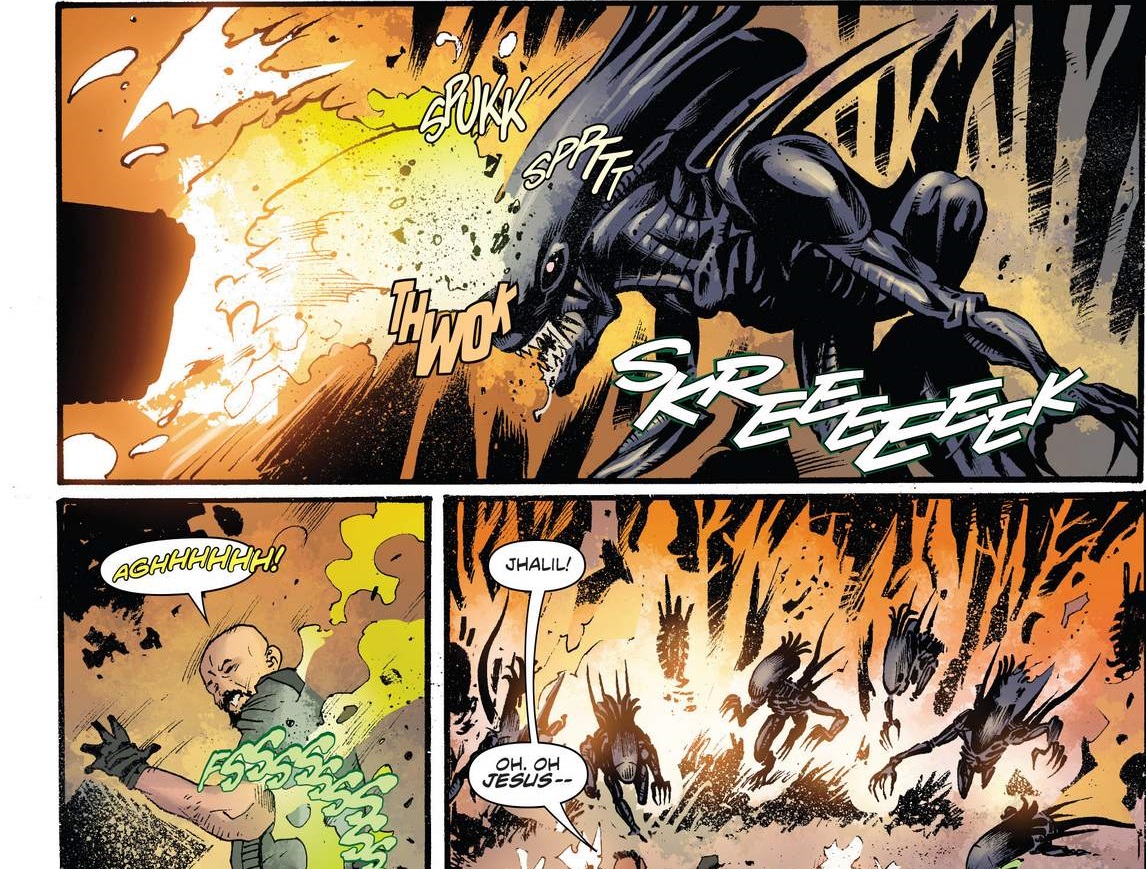 The xenomorphs appearing in the Prometheus Life and Death comics look like some of the new Carlos Huante concept art drones. Look at the eyes and the shape of the head:
