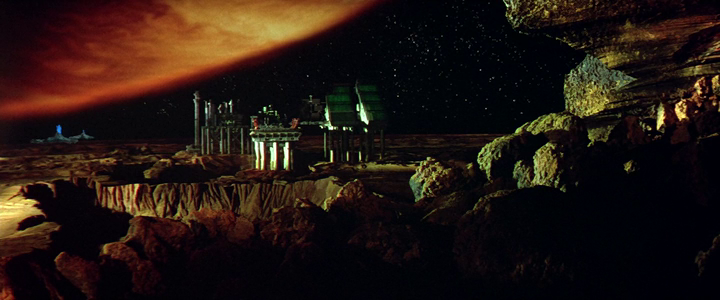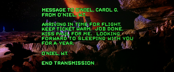 Curiously enough, Outland seems to have rubbed off, perhaps serendipitously, perhaps simply due to archetypical similarities, on the Alien sequel. “A mining operation like Con-Am #27 represents a frontier,” Hyams said, “and frontiers strike me as sinister, dangerous places of enormous hardship.” These comments concerning the mining facility and its occupants mirrors Aliens’ storm-harried colonists, who are described in James Cameron’s script as being “pioneers in a very unforgiving climate” who must “work very hard to get a toehold” but are fortunately imbued with “a stubborn optimism characteristic of hardy frontier types throughout history.” Hyams also describes the motivation of his miners as being “willing to put up with Hell for the chance to make some big quick money,” just as we hear Newt’s father, a prospector, proclaim in Cameron’s movie upon discovering the derelict: “Folks, we have scored big this time!”